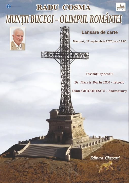 Le Musée national de Peleș a le plaisir d'annoncer le lancement du livre « Monts Bucegi – L'Olympe de Roumanie », de l'auteur Radu COSMA, le mercredi 17 septembre 2025 à 14h00, dans la salle de concert du château de Peleș. Cet événement s'inscrit dans le cadre du cycle consacré à la reine Marie de Roumanie, dont la naissance fête cette année ses 150 ans.