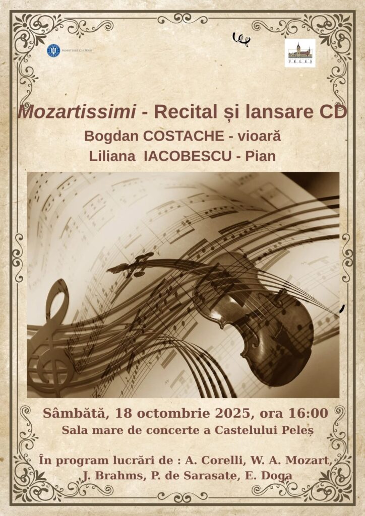 Vă invităm sâmbătă, 18 octombrie 2025, ora 16:00, la recitalul și lansarea CD-ului ,,Mozartissimi”.